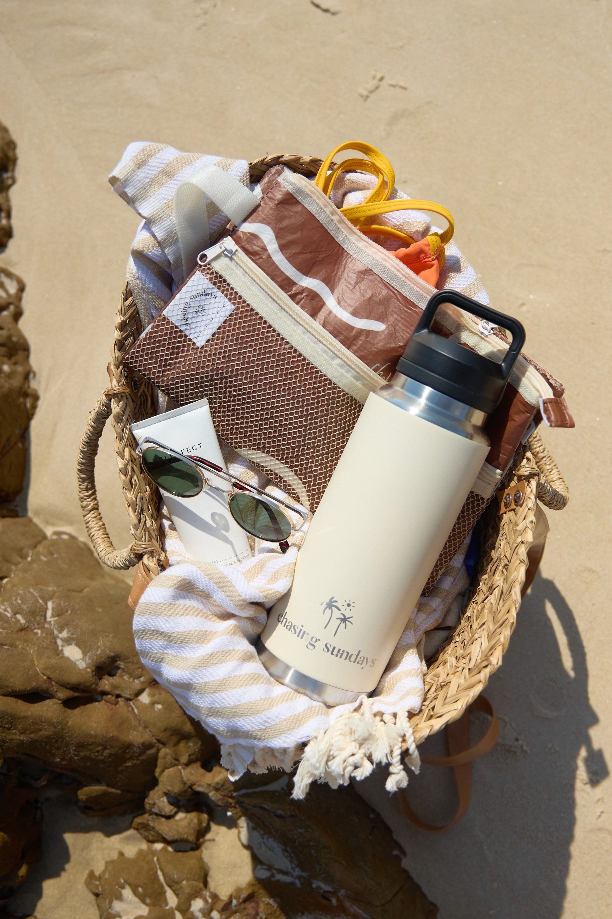 Chasing Sundays was born from admitted frustration. Founder and head designer Bev, a mother of three, couldn’t find a stylish, lightweight, quick-dry towel that actually worked for busy beach days. So she made one.